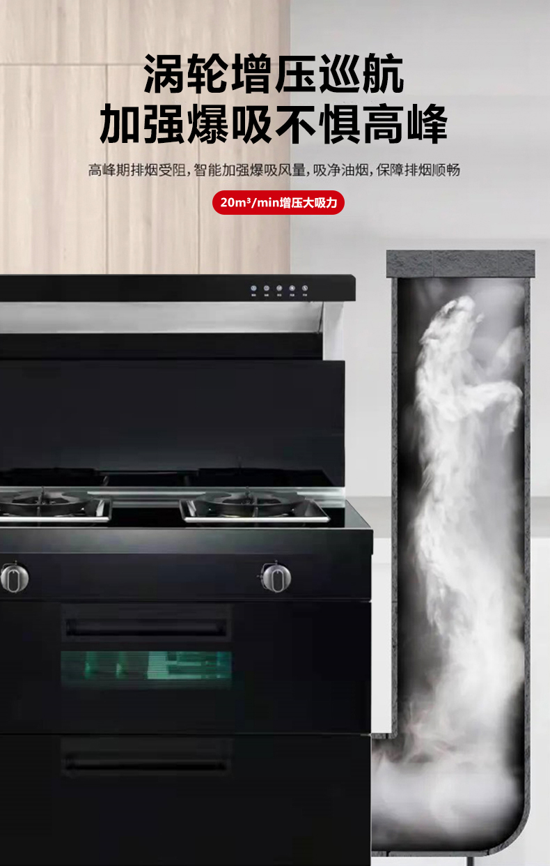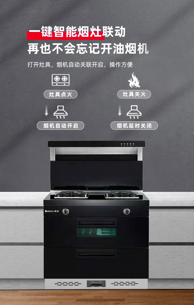 多重杀菌消毒,烟灶联动,置物台加热